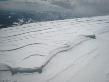 ん? 野伏ヶ岳? 知らない山だ。 猛烈なブッシュで雪の時しか行けないそうだ。 早速ネット検索してみる。 ダイレクト尾根が急登で厳しいようだ。 山幸のテコにかなうかな〜 思案の結果大したロングコースではないので参加する事で返メールする。 計画では 登山口の白山仲居神社の駐車場付近で雪上テント泊 早朝出発で雪の固い内に登頂を目指す。 昼過ぎ 自宅発 集合場所の多賀SAにて全員揃う。 新年会以来の再開だ! 簡単な挨拶をして目的地目指して出発する。 名神高速では若干の混雑もあったが 東海北陸自動車道はがらがらで走りやすい。 16時過ぎ登山口の白山仲居神社に着く。 早速テント設営場所を探す。 林道の奥に新雪の平坦地を見つける。 全員で雪踏みをして設営準備に入る。 今回は設営場所まで車が入れるので好都合だ。 食材も豊富に持参し 早速宴会の始まりだ。 まずは雪の中に埋め込んで冷やしたビールでカンパイ お互いに”明日は朝が早いので程ほどに!" と言いつつどう なる事やら!?? 各自持参の飲み物がゾクゾク出てくる。 そして食料も すき焼き ウインナー めざし サヨリの干物・・・・ 明日の出発に備え 火を使う物はかたずけテント内で二次会が始まる。 山談義をしつつ楽しい時間が経過する。 20時ごろには各自のテントに行ったはず・・・?? 次の4枚の映像は山少年さんより借用 ![]() ![]() 4時過ぎ目覚める。 すでにトウリンさんと山少年さんの声が聞こえる。 まだ早いのでしばしまどろむ。 4時半起床 テント内面は結露して氷の玉になっている。 テント撤収 朝食と慌ただしい。 計画より15分遅れて6時15分出発する。 途中の牧場跡まではよく踏まれた林道沿いだが 急斜面のショートカットもいたるところで! 植林地を抜けると風が強い。 やがて小雪が降ってきた。 まるで吹雪だよ。 おいおい今日は快晴の予報だったではないか!! しかし この吹雪も長続きはせず牧場跡の大雪原到着の頃にはやみ 大雪原の向こうには目指す野伏ヶ岳が勇姿を見せだした。 ![]() ![]() ダイレクト尾根の取りつきに来た。 ココで又もやショートカット。 急登の尾根をショートカットするのだからさらに急登となる。先導は"鉄人"の異名を持つasekakiさんと "剱の雪男"の異名を持つトウリンさんだ。 グングン高度を稼ぐ。 ダイレクト尾根に乗った。 周囲に広がる雪を戴いた山々 思わず息を呑む!! 言い尽くされた言葉だが ”その場に行かないと本当の良さは解からない" まさに格言だ!としみじみ思う。 声掛けしてくれたasekakiさんに思わず感謝の言葉を掛ける。 ![]() ![]() ダイレクト尾根を登りきり縦走路に乗る。 北方に白山の勇姿が。 白山は照れ屋なのか!? 山幸が見るときは何時も雲の中だ! 北風が強い。 雪面の風紋が綺麗だ。 先ほど見た雪庇を踏み抜かないよう注意する。 10時半山頂到着 先導者のお陰で名前も知らなかった野伏ヶ岳の山頂に立つことが出来た。 遮るもののない眺望を楽しむ。 何時までも楽しんでいたい眺望だが そうもいかず集合写真を撮って下山に掛かる。 ダイレクト尾根をマタマタショートカットして急斜面を雪と戯れながらすべるように下りる。 まさにあの人は”雪男”だ。 13時過ぎ 全員無事下山する。 ![]() ![]() 白鳥IC近くの温泉”美人の湯しろとり”に立ち寄る。 ココの駐車場から今登った野伏ヶ岳が良く見えている。 登れた幸せ 皆への感謝 登った喜びをかみ締めながら PH8.0のナトリュウム泉にゆっくりと浸かっていた。 今回の野伏ヶ岳 名前すら知らなかった山 そして少し躊躇した山だったが 名リーダーに導かれいともたやすく見られたあの景色そして登降出来た事に感謝!! そして微笑んでくれた天候に 同行の仲間に感謝 トップページへ |