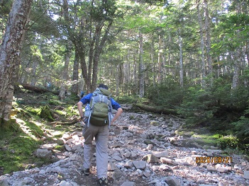 | 所要が有り長野市に出掛けた。 帰路 蓼科山登山することにした。 丁度連休中で登山口の駐車場は満杯で路上駐車で溢れている。何とか隙間を見つけて駐車することが出来た。 流石人気の山 しかも連休中で天気も良い。 とは言えここまでとは予想していなかった。 蓼科神社の鳥居を潜り登山路に入ると針葉樹林帯で石のゴロゴロした歩き難い道だ。 駐車していた車の割には歩いている人が少ない。 もうすでにかなり上まで登っているのだろう。 ![]() 路上駐車の列 登山開始 ![]() 歩き難い登山路 続くゴロゴロ道 蓼科山荘に着いた。 広場にテントを設営して山のグッズを販売している。 人だかりには近づかずに広場の片隅で一服する。 小屋を出ると間もなく本格的な岩場となる。 たちまち速度が落ち渋滞となる。 早くも下山する人も! 渋滞が延びていく。 頂上直下の”蓼科山頂ヒュッテ”も人で溢れている。 勿論横目で見てパスする。 一登で山頂だ。 着いてビックリ!! 平坦でだだっ広い山頂だ! しかも丸みのある岩では無く 角ばった岩の為立ち入る事が出来ない!! かなり距離を置いて展望案内盤が設置されているが細いルートのみだ。 雲が掛かり眺望も良くないのでパスして下山する。 ![]() 賑わう蓼科山荘広場 本格的な岩場になる ![]() 百名山七十九座目の山頂 下山 下山に掛かるが岩の登坂路は狭く離合出来る場所は少ない。 状況の判断なく 闇雲に揚がってくるので あちこちでだんごに成り動けない。 ようやく先頭に成ったので ”登の人チョットまって!! 其のまま来たら離合できなく成るから 先に降りさせて!” 何度も何度も同じことを言って漸く蓼科山荘迄降りられた。 休憩することなく其のまま下山する。 登の人が益々増え良く踏まれた歩きやすい部分は登の人たちで数珠繋ぎだ。 従ってあまり踏まれていない部分を歩く事に成ってしまう。 その時左足を滑らせてしまう。 右足の上に尻もちをつくことに!! 足首に痛みが!! 幸い靴は足首まで確り結んでいたので大事には至らなかった。 両足で立ち上がってみても大して痛みは無かった。 しかし体重をかけると矢張り痛い。 まだ小一時間の下山が待っていた。 8時15分潜った登山口の鳥居へ11時40分帰り着いた。 所要時間3時間25分の登山だった。 百名山79座目の登頂を終えることが出来た。 車に戻りナビ設定すると”到着予想時刻は17時30分”だったのだが高速道渋滞により帰り着いたのは20時半に成っていた。 ページ先頭へ トップページへ |