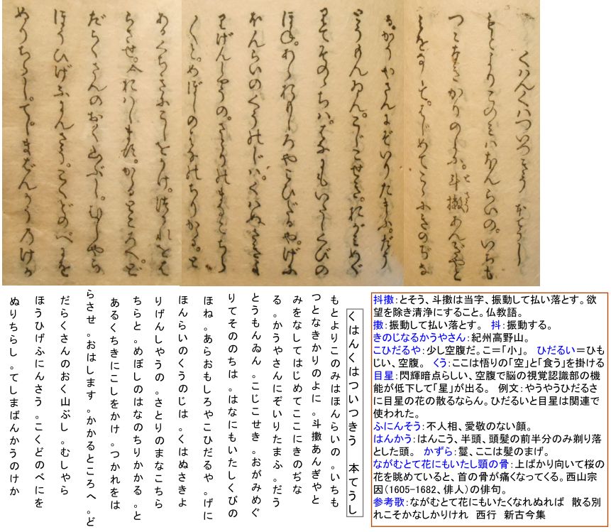 江戸時代、京都の浄土宗の寺が付けた細かい支出の覚書。不明のものも多くあるが、食物、たばこ、ろうそくなどわかりやすい。1月、2月の冬の食事で江戸時代の京都の僧が食していたものがわかる。