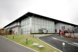 「メディカルコートあやめ池」の入り口(2階部分)と駐車場が見えてきます。
