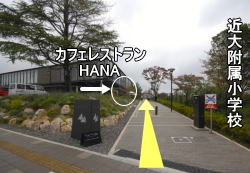 「カフェレストランHANA」を左に「近大附属小学校」を右に見ながら北進 |