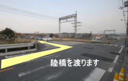 「近鉄学園前駅」の南側ロータリー前の信号(かどに「衛藤医院」が目印)を東へ進み、約600m進むと近鉄奈良線を北にわたる陸橋があります。これを渡り、道なりに進む |