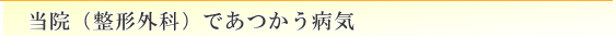 変形性股関節症、変形性膝関節症、半月板損傷などの股、膝関節の疾患。 |